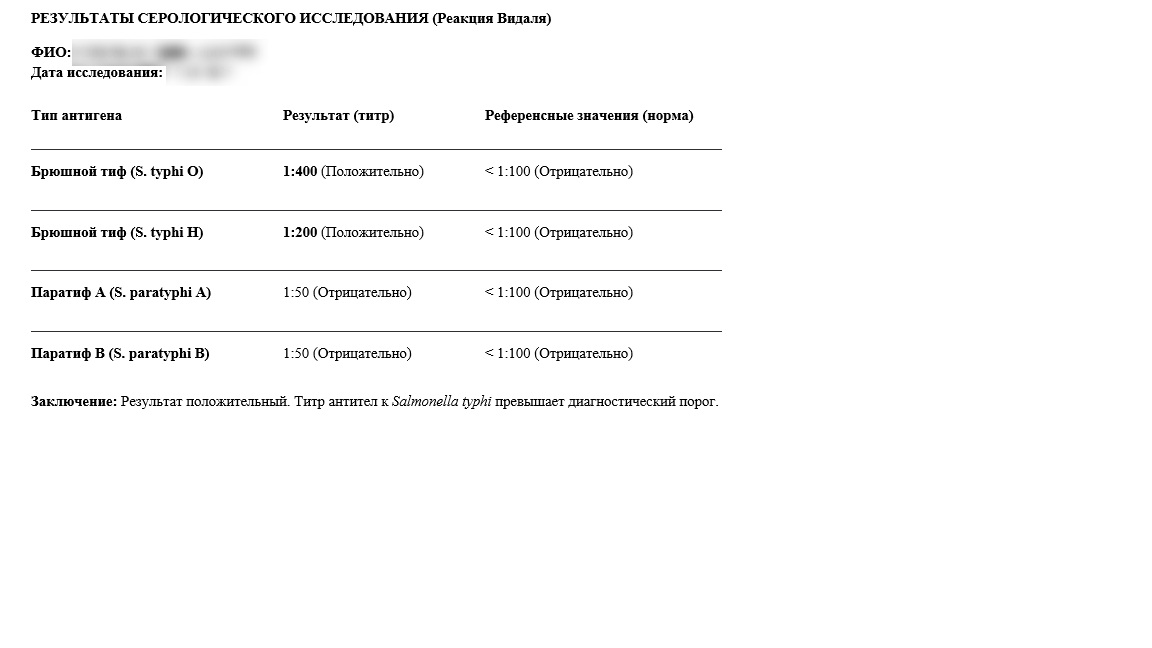 Анализ крови реакция Видаля