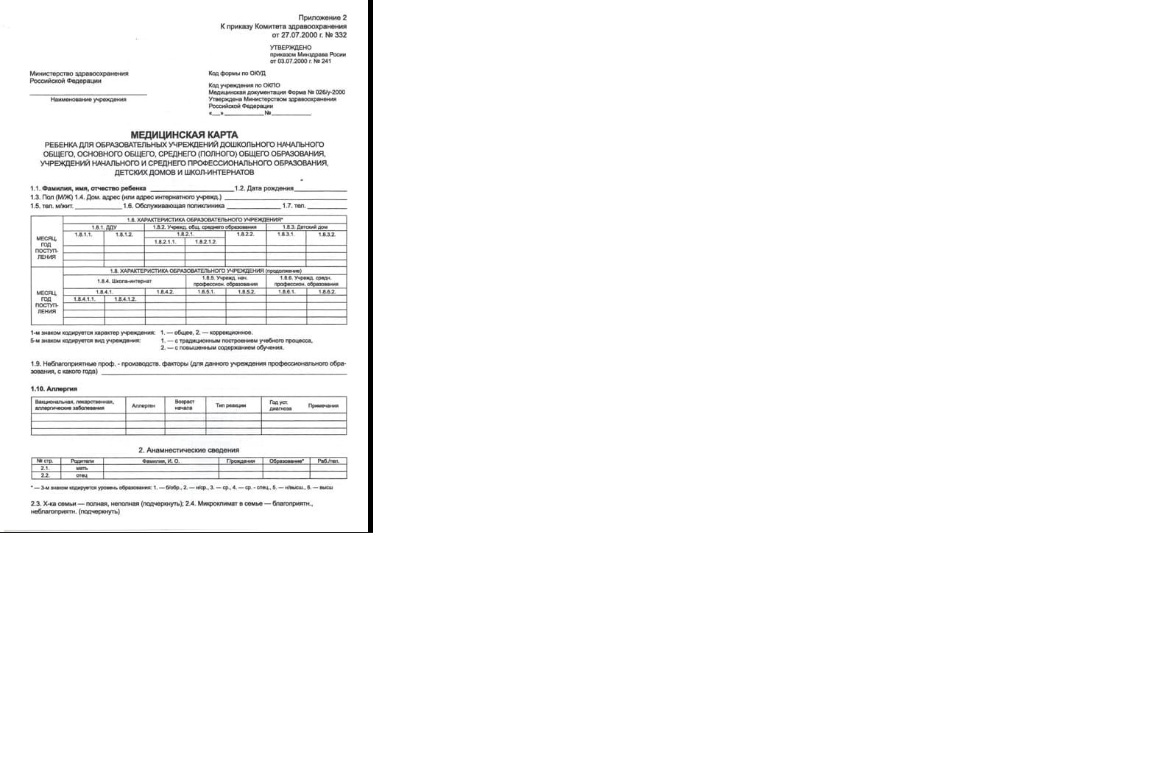 Оформление карты медосмотра несовершеннолетнего