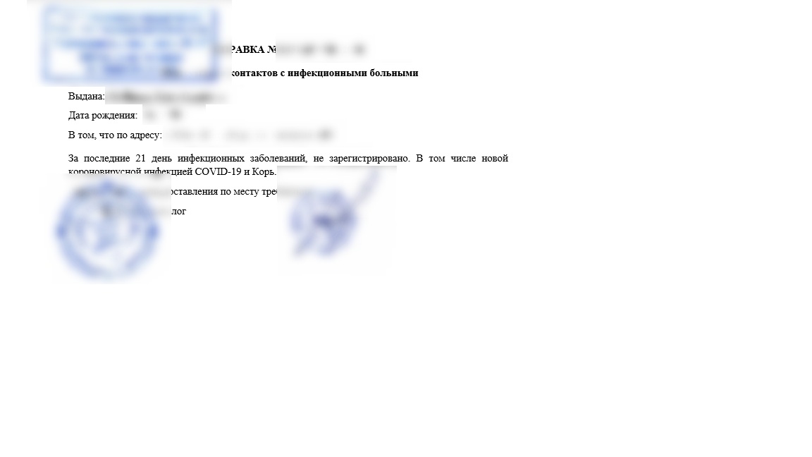 - Информация об отсутствии инфекционных заболеваний в районе проживания пациента. Обычно во внимание берется период 14 или 21 день, что обязательно указывается в соответствующей графе;