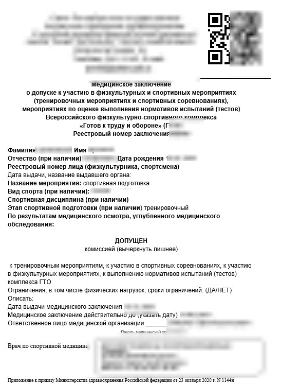 Допуск к занятиям в секциях считается действительным, если на бланке есть: