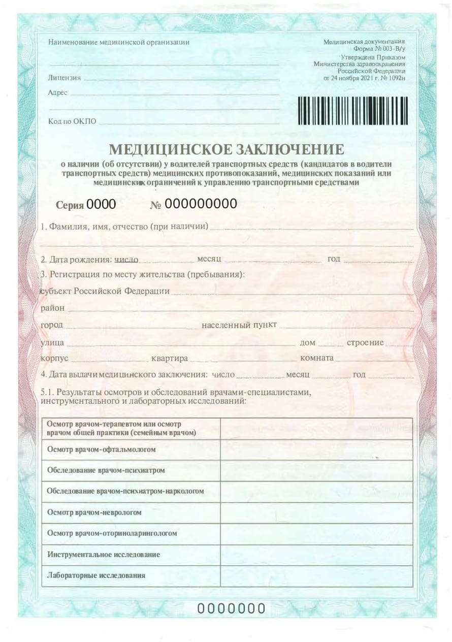 Справка №003-В/у для ГИБДД