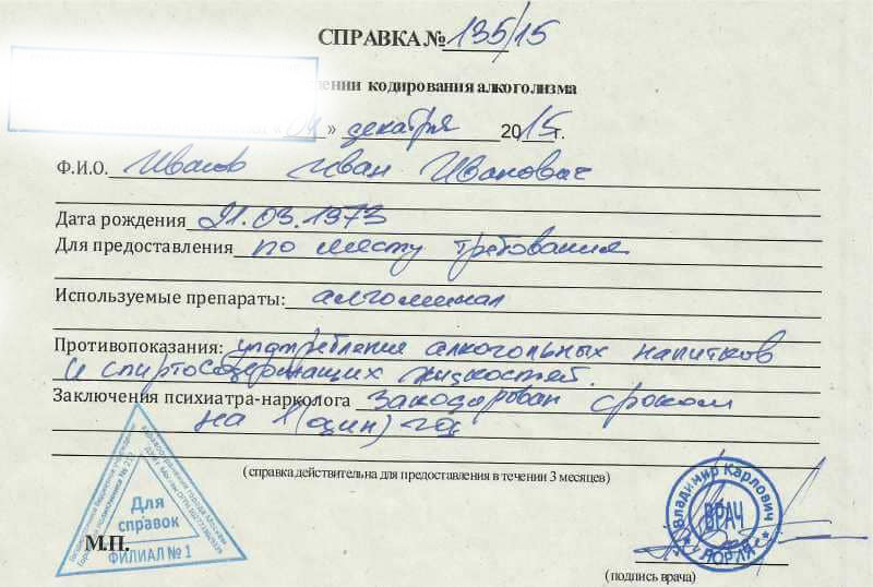 Никакой нервотрепки и переплат, пару кликов и справка о кодировке от алкоголизма у вас на руках.