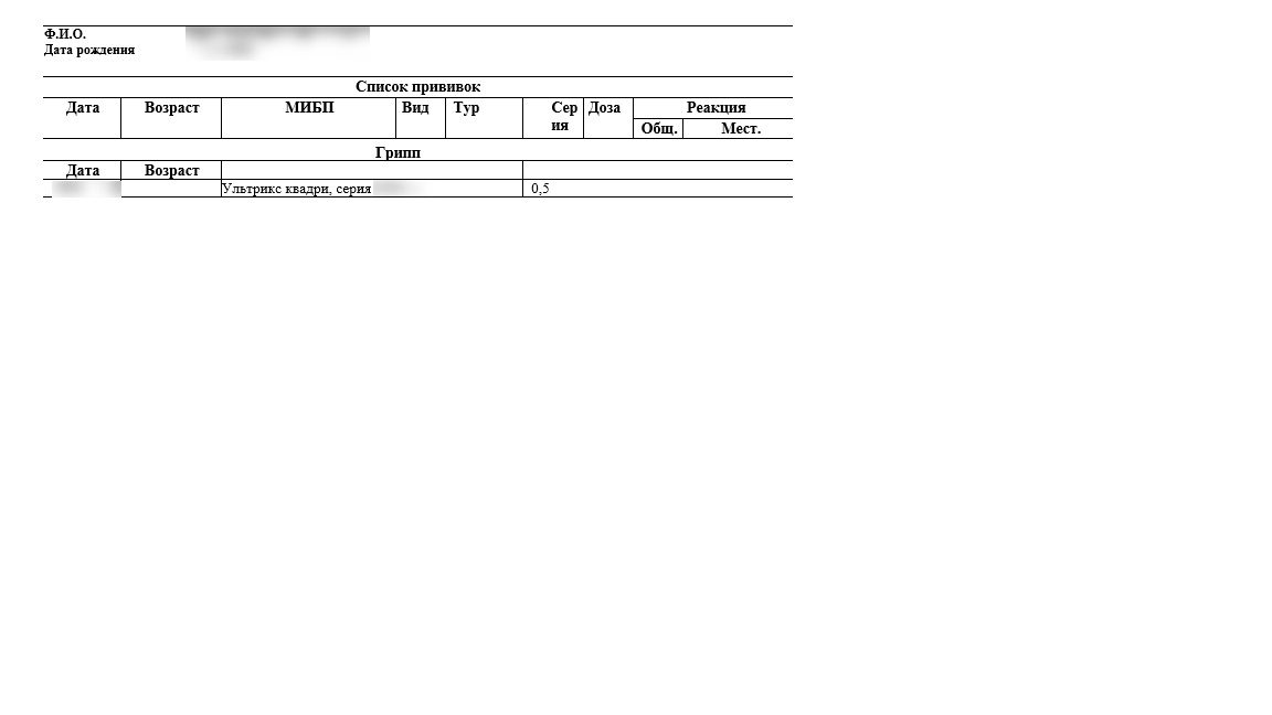 Справка о прививке от гриппа