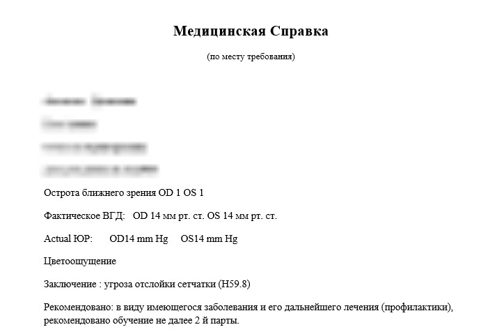 Справка врача офтальмолога с рекомендациями по обучению на ближней парте